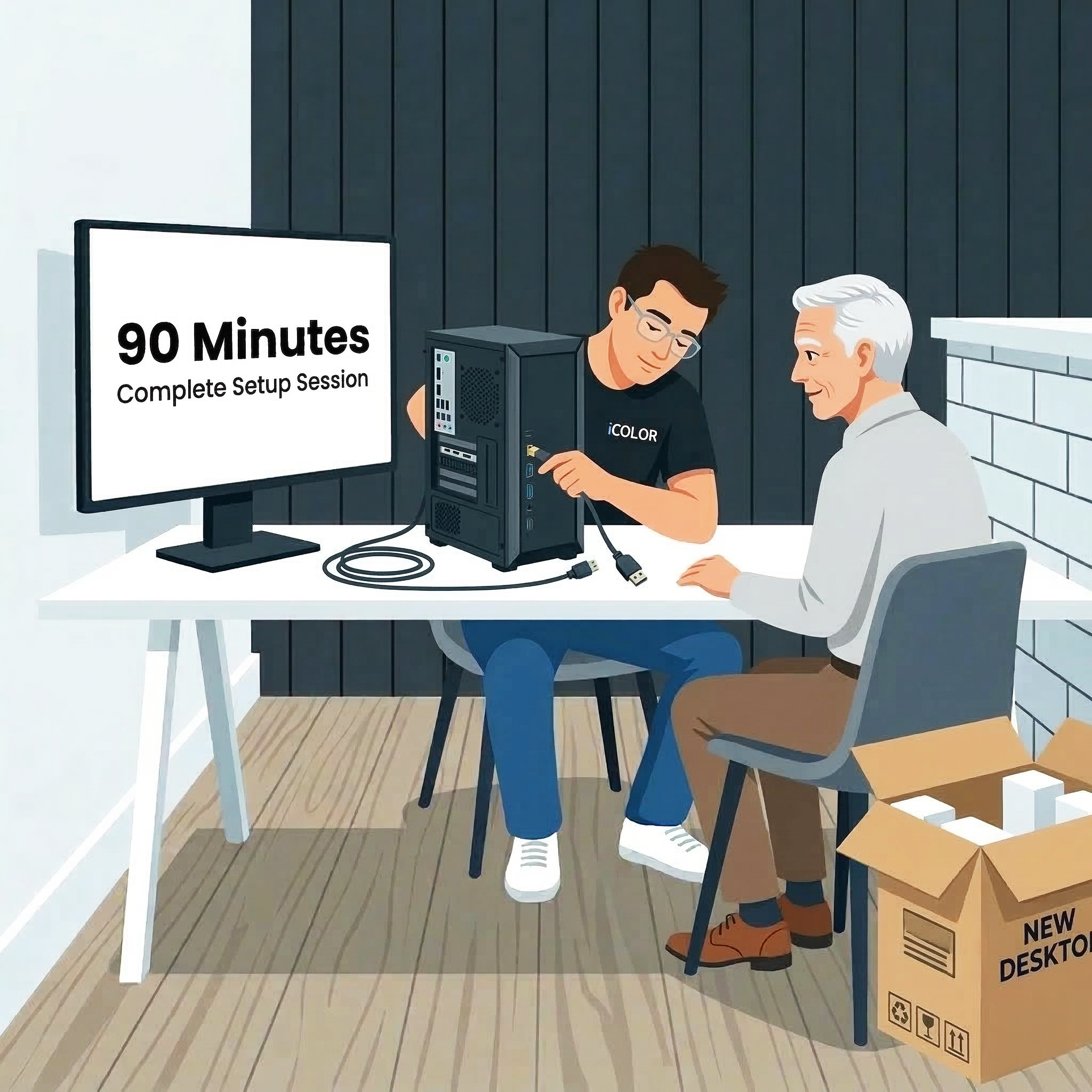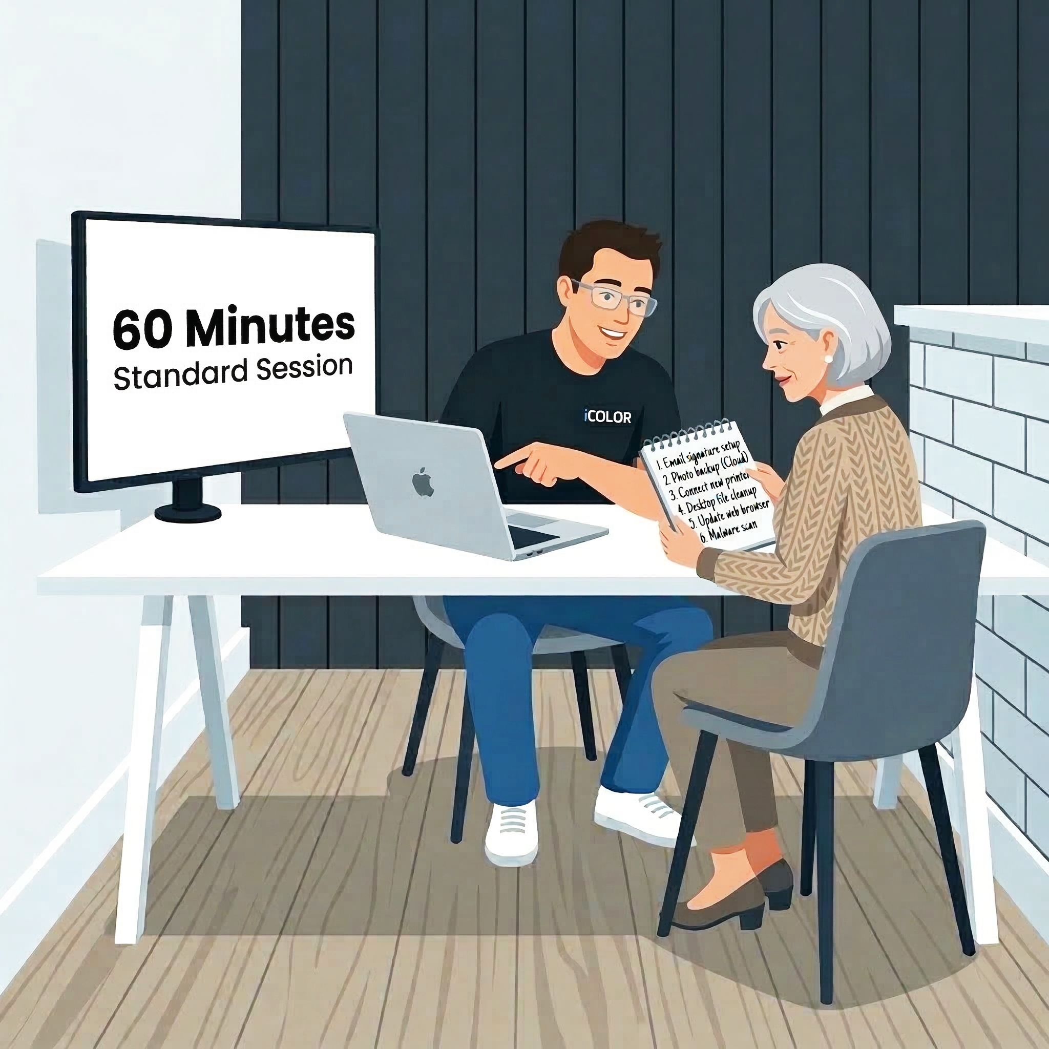 Choose the session that best fits the help you need. Every Tech Connect session includes one-on-one guidance from a friendly iColor technician in a relaxed, pressure-free environment. We move at your pace and make sure you understand every step.