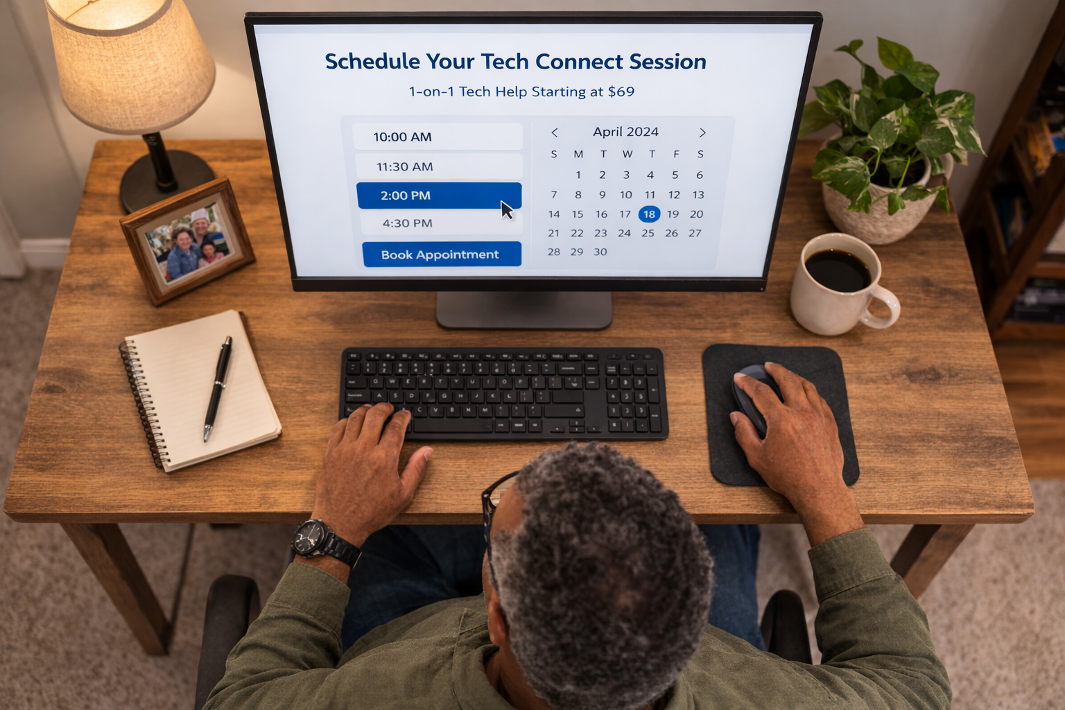 Schedule a Tech Connect session today and get the personalized, one on one guidance you need to feel confident using your phone, tablet, or computer.